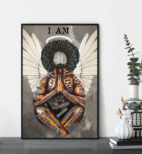 Black King Angel Poster - African American Wall Art Print