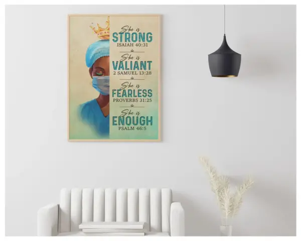 Black Queen Nurse Poster Canvas She Is Strong Valiant Fearless Enough Poster Black Nurse Poster God Bible Verses Christian Home Decor