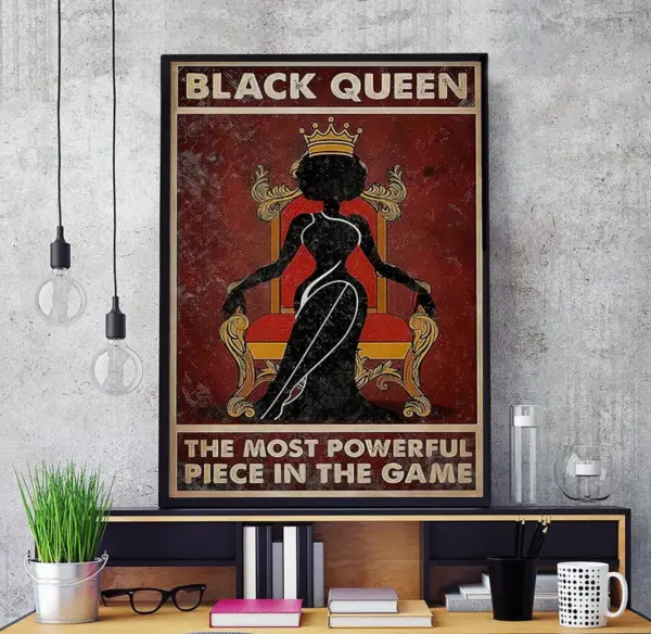 Black Queen Poster African American Canvas The Most Powerful Piece In The Game Wall Art Girl Power Canvas Print Black Girl Magic Print