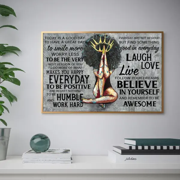 Black Queen Poster Canvas Laugh Love Live Follow Your Dreams Believe In Yourself And Remember To Be Awesome Self Love Prints