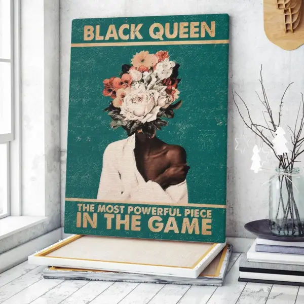 Black Queen Poster Most Powerful Piece In The Game African Women Pride Black Women Proud Brown Girl Gift Floral Art Decor Poster Canvas