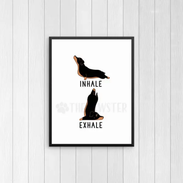 Black Tan Dachshund Yoga Art Print Inhale Exhale Wall Decor Wiener Dog Yoga Wall Art Yoga Sign Yoga Lover Gifts Quote Wall Art Poster