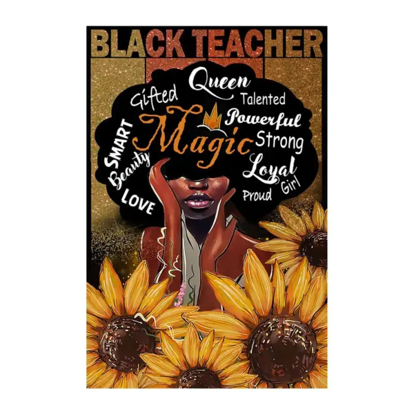 Black Teacher Magic Queen Strong Smart Powerful Love Beauty Poter Black Teacher With Sunflower Poster Black Teacher Magic Poster Wall Art