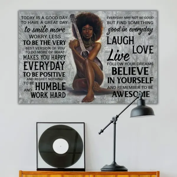 Black Woman And Music Poster Afro Woman Today Is A Good Day Canvas Black Girl Magic Wall Art Afro Queen Poster