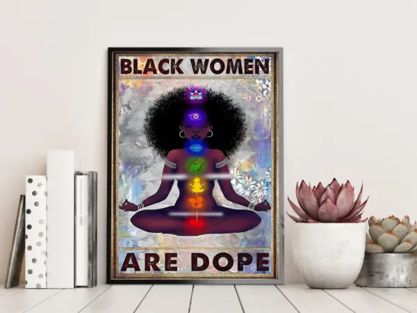 Chakra Art Poster - Black Woman Chakra Meditation Yoga Decor