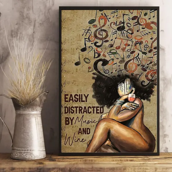 Black Girl Magic: Music & Wine Poster - Melanin Queen Wall Art