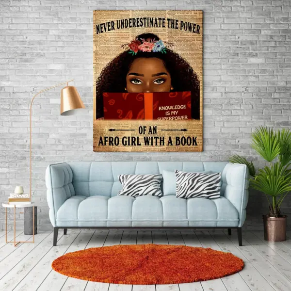 Black Woman Poster Black Pride Poster Afro Queen Portrait Never Underestimate The Power Of An Afro Girl With A Book Vintage Poster
