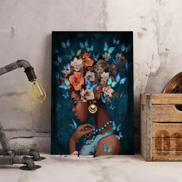 Black Woman Flower Head Canvas Art Print
