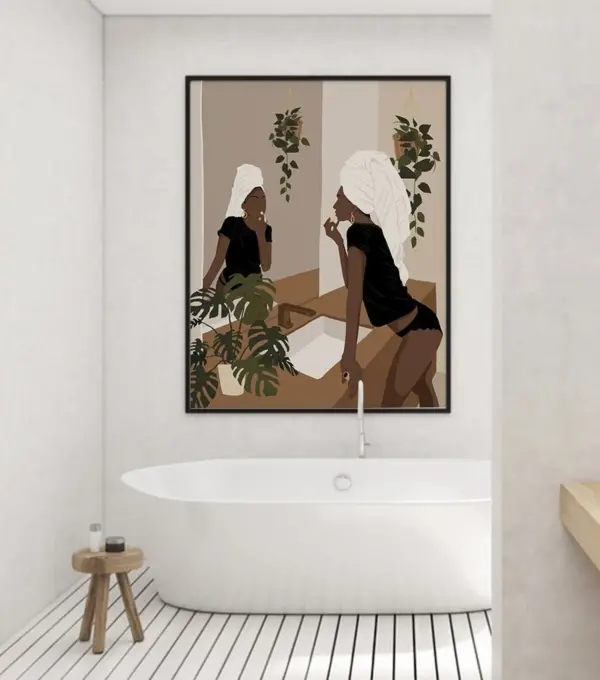 Black Woman Putting Lipstick Art Modern Black Woman Poster Woman Stylish Art Boho Woman Art Canvas Black Woman Art Modern Wall Decor