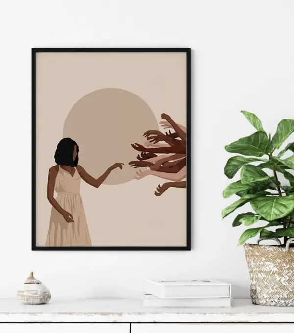 Boho Black Woman Hands Canvas Art - Feminist Wall Decor