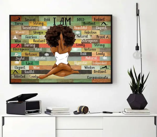 Black Yoga Girl I Am Strong Beautiful Elegant Kind Wise Poster Yoga Lovers Poster Black Yoga Girl Vintage Poster Black Queen 0904