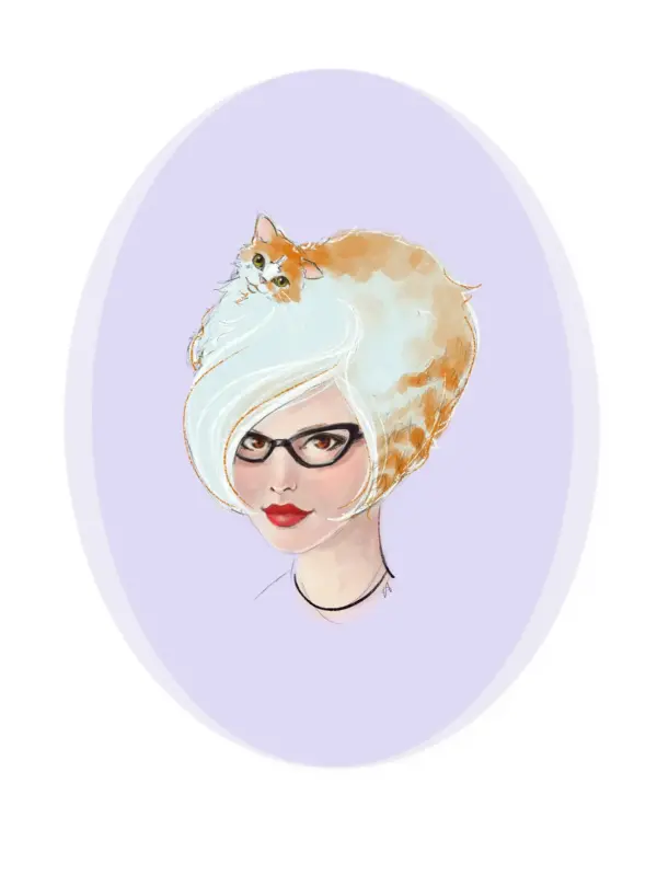 Blonde Vintage Pinup Girl Art Print Poster Vintage Girls With Cats On Their Heads Kitten Club Cutie Effie Ginger Cat