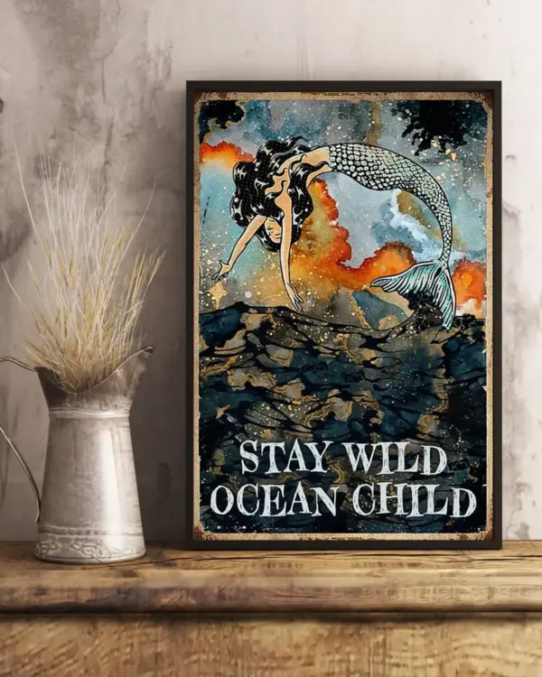 Blue Earth Ocean Stay Wild Jumping Mermaid Vertical Poster Mermaid Vintage Poster Mermaid Lover Ocean Child Poster No Frame