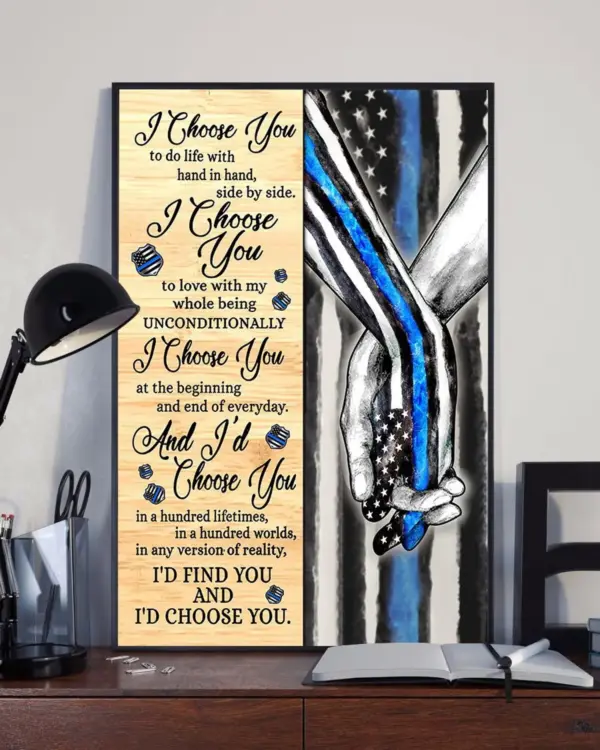 Blue I Choose You Poster Vertical Poster Unframed Police Officer Wall Art Print For Decor Best Gift Ever For Police Officers