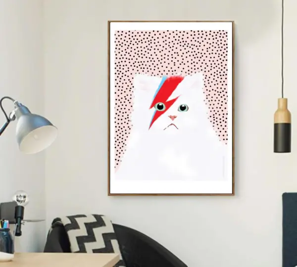 Blush Pink Wall Art Bowie Cat Giclee Print In Coral Wedding Anniversary Or Birthday Gift For Cat Lovers Teen Girl Room Decor