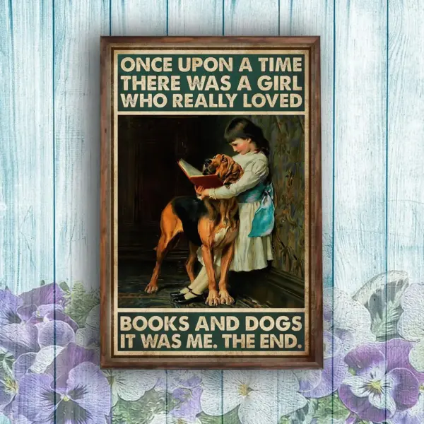 Book And Dog Lovers Once Upon A Time There Was A Girl Who Loved Books And Dogs Poster Home Living Decor Poster