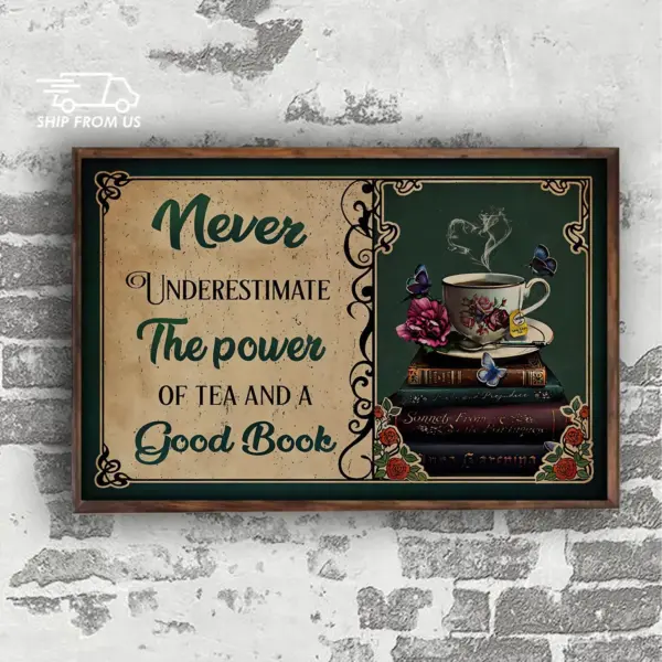 Book And Tea Lovers Gifts Never Underestimate The Power Of Tea And A Good Book Poster Home Living Decor Poster