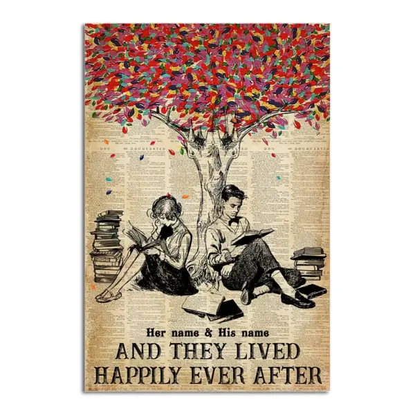 Book Couple Poster Personalized Book Poster They Lived Happily Ever After Poster Love Reading Book Poster Books Vintage Poster Book