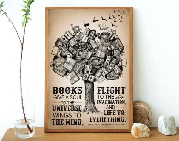 Book Give A Soul To The Universe Wings To The Mind Poster Book Lover Poster Book Tree Home Decor Vertical Poster No Framed