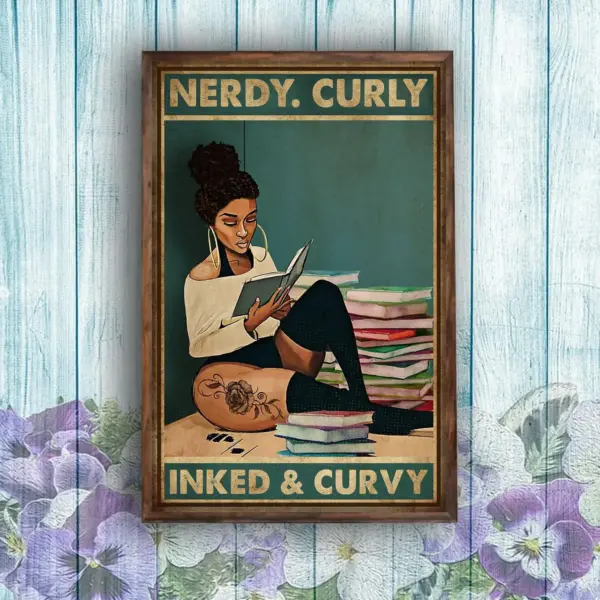 Book Lovers Black Girl Nerdy Curly Inked And Curvy Poster Black Lives Matter Wall Art Print Home Living Decor