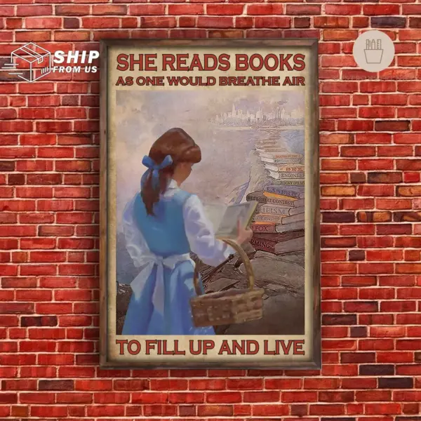Book Lovers Poster Girl Read Books As One Would Breathe Air To Fill Up And Live Poster Home Living Decor Poster