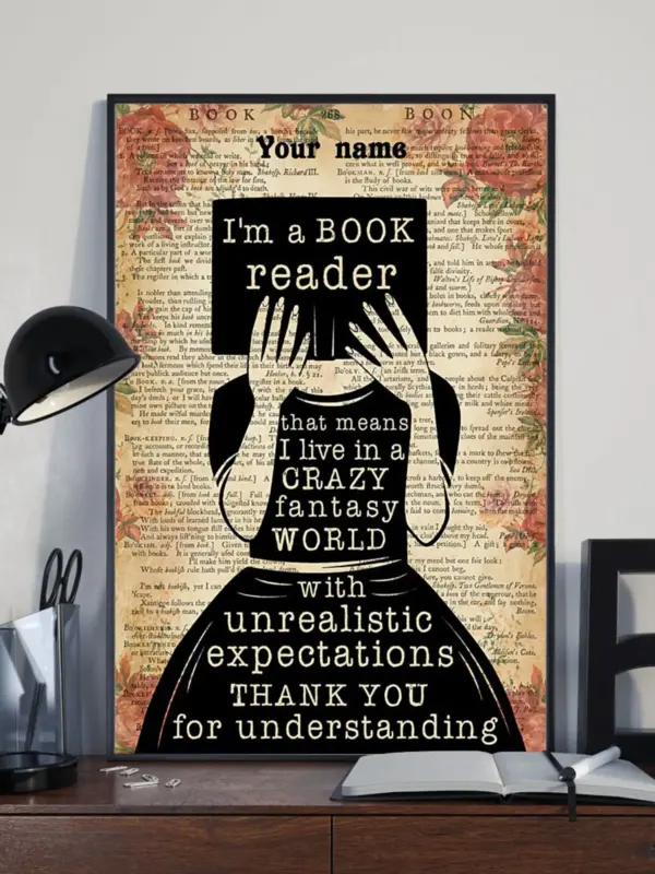 Book Reader Custom Name Poster I M A Book Reader I Live In A Crazy Fantasy World Love Book Reading Lovers Book Lover Bookworm Gift