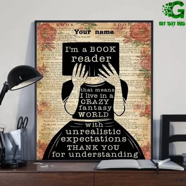 Book Reader Poster Book Lovers Custome Name Wall Art Living Home Decor Wall Decor Best Gift Ever