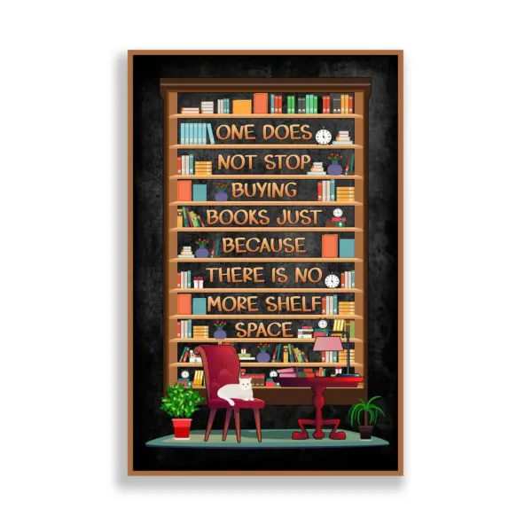 Bookcase Poster Reading Corner Decoration One Does Not Stop Buying Books Just Because There Is No More Shelf Space Books Lover Gift