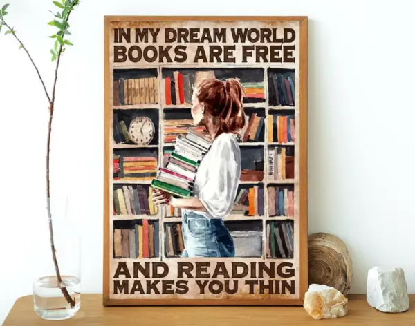 Books Are Free And Reading Makes You Thin Poster Idea Gift For Book Lovers Gift For Her Home Decor Vertical Poster No Framed