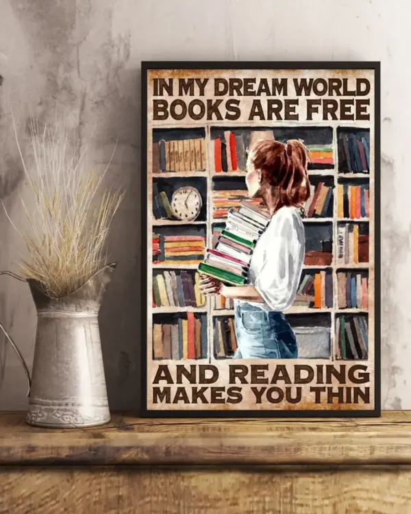Books Are Free And Reading Makes You Thin Poster Reading Lover Poster Vintage Posters Book Art No Framed Poster