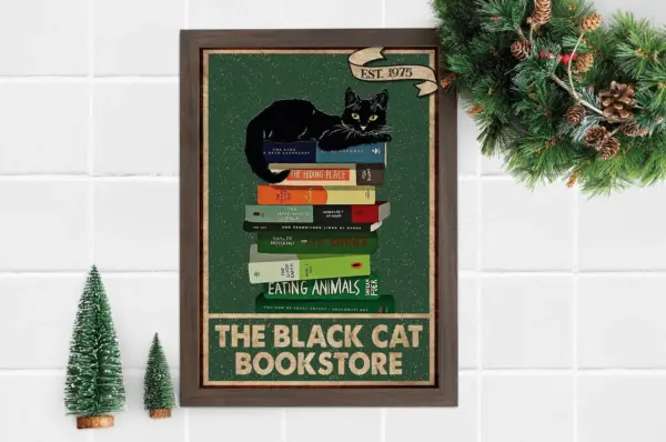 Bookstore Poster Cat Poster Print Wall Art Cat Lover Gift Wall Decoration Black Cat Poster Hanging Poster Best Gift
