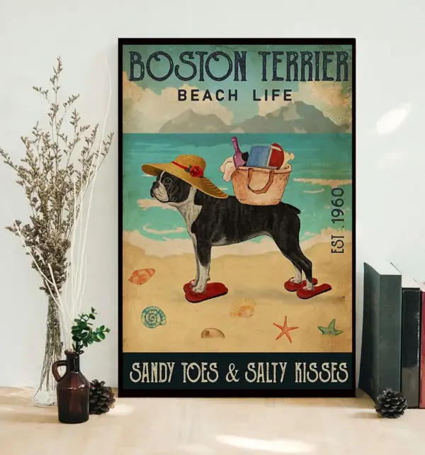 Boston Terrier Beach Life Sandy Toes And Salty Kisses Poster Canvas
