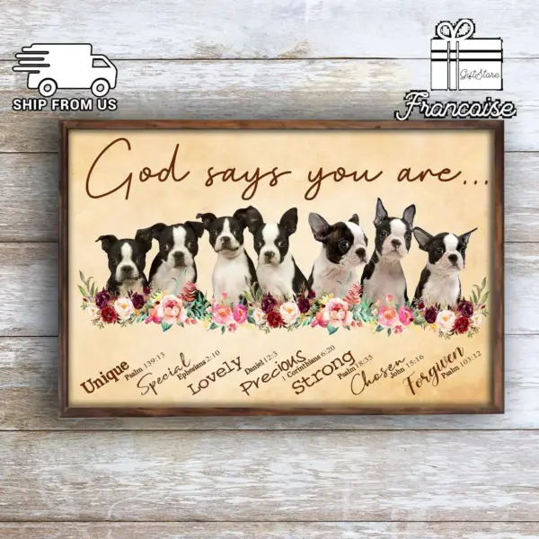 Boston Terrier Dog Lovers God Says You Are Unique Special Lovely Poster Home Living Decor Poster