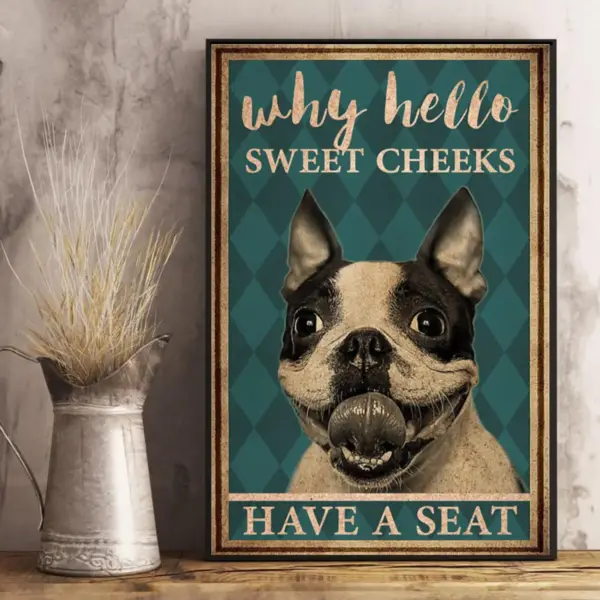 Boston Terrier Why Hello Sweet Cheeks Vertical Poster Boston Terrier Funny Poster Art Best Gifts Ever Wall Decor Poster No Frame