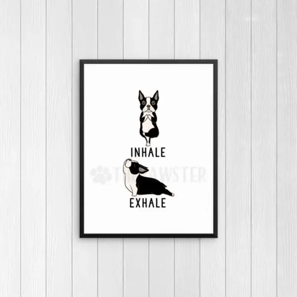 Boston Terrier Yoga Art Print Inhale Exhale Wall Decor Dog Yoga Wall Art Yoga Sign Yoga Lover Gifts Quote Wall Art Living Room Poster