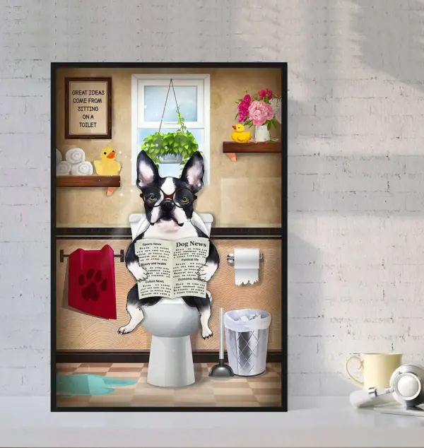 Boston Terriers Toilet Poster Dog Lover Gift Bathroom Poster Pet Memorial New Pet Gift Animal Poster Home Decor Dog Print 0401