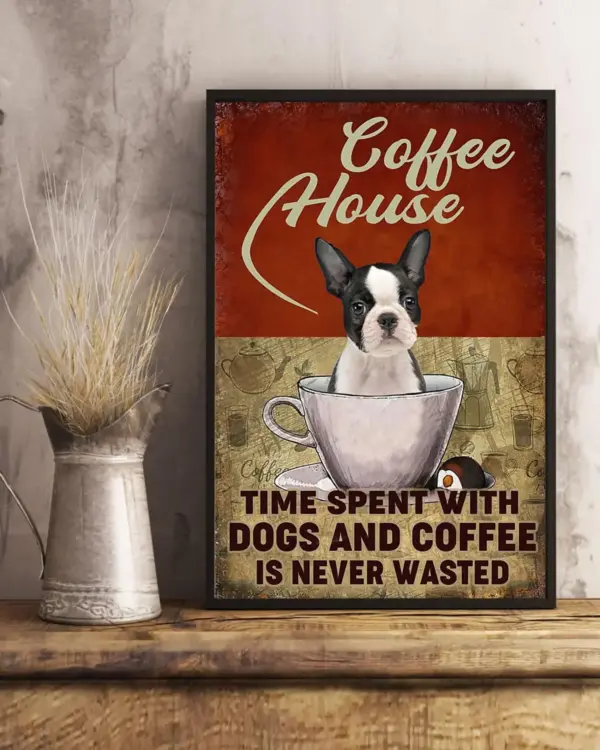 Boston Time Spent With Dogs And Coffee Vertical Poster Coffee And Dog Poster Dog Lover Coffee Lover Gift For Dog Lover No Framed