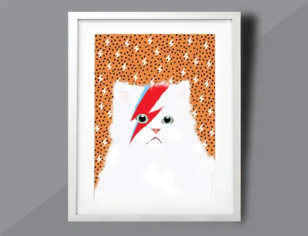 Bowie Cat Terracotta Print Rust Orange Art Print For Teenage Girl Bedroom Decor Hipster Animal Picture Gift For Him Ziggy Stardust Kitten