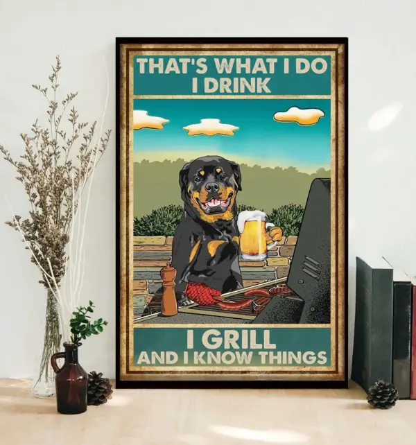 Boxer Dog Thats What I Do I Drink I Grill And I Know Things Poster
