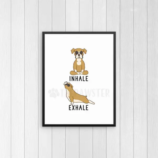 Boxer Yoga Art Print Inhale Exhale Wall Decor Dog Yoga Wall Art Yoga Sign Yoga Lover Gifts Quote Wall Art Living Room Poster