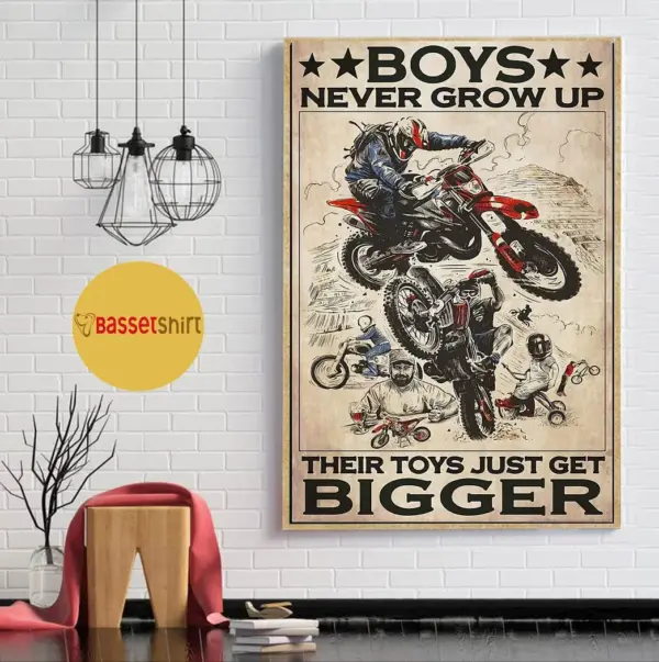 Boys Never Grow Up Their Toys Just Get Bigger Motorcycle Vertical Poster