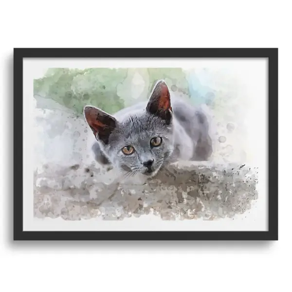 British Blue Short Haired Cat On Wall Grey Cat Face Art Print