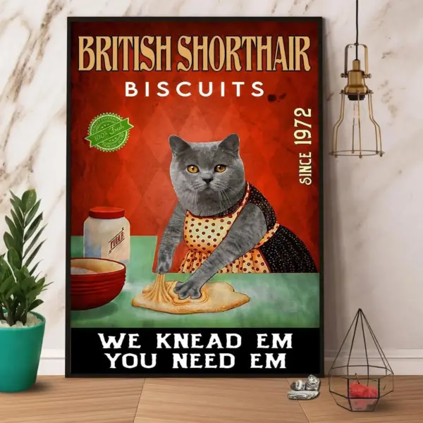 British Shorthair Biscuits We Knead Em You Need Em Poster Canvas Cat Poster Cat Chef Poster Cat Lover Poster Baking Canvas Best Gifts