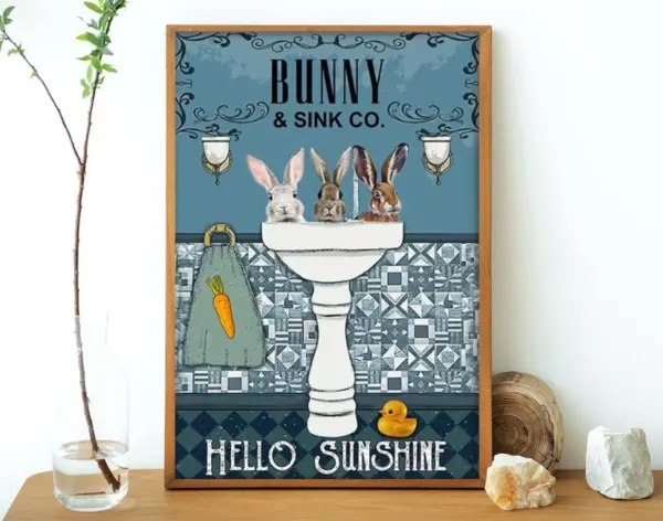 Bunny Co Bath Soap Hello Sunshine Poster Funny Rabbits Bathroom Decor Bunny Decor Rabbit Lover Gift Vertical Poster No Framed