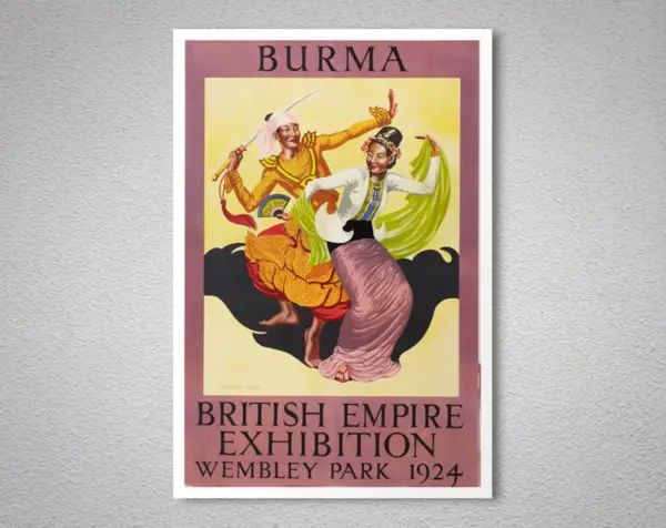 Burma British Empire Exhibiton Wembley Park Vintage Travel Poster 1924 Poster Print Sticker Or Canvas Print Gift Idea