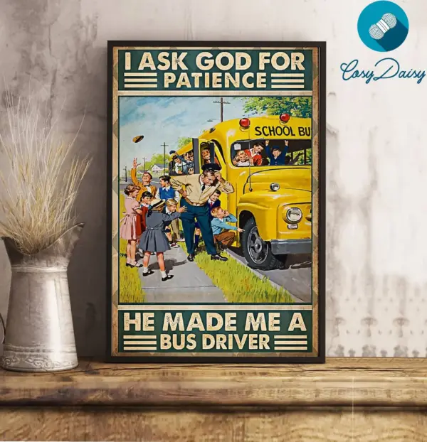 Bus Driver Poster I Ask God For Patience He Made Me A Bus Driver Wall Art Home Decor Poster Print