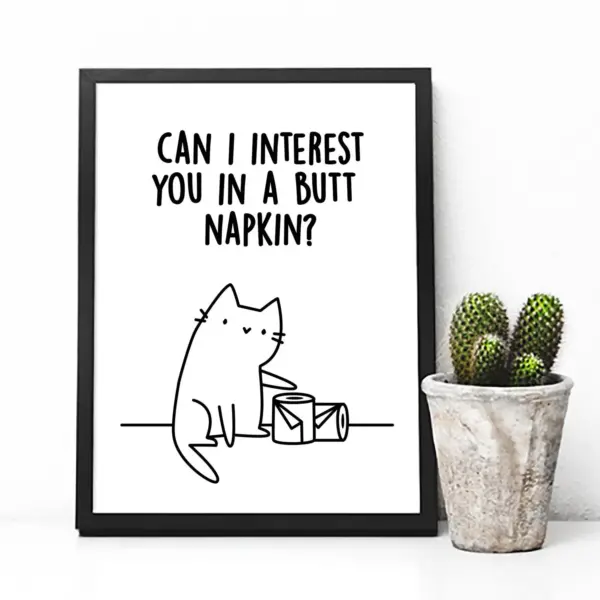 Funny Cat Butt Napkin Poster - Cat Wall Art Print