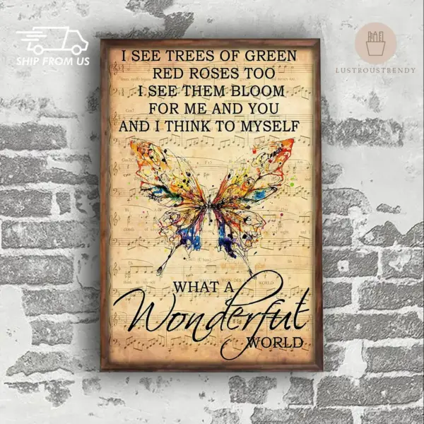 Butterfly Poster What A Wonderful World Funny Poster Wall Art Print Home Living Decor Poster