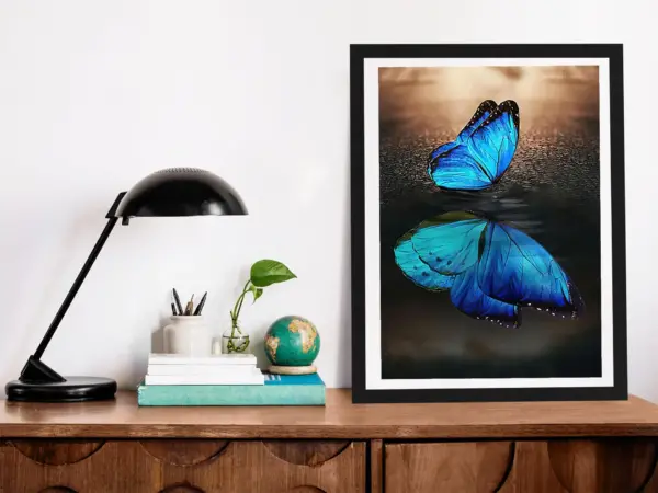 Butterfly Water Reflection Poster Framed Matte Canvas