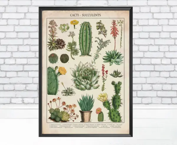 Cactus Vintage Botanical Print Modern Art Print Vintage Art Succulents Poster Floral Gift Idea Wall Art Poster Print S